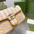- Materials and motifs mix together each item to create unique. one-of-a-kind iterations of emblematic styles. This Marmont is presented in raffia-effect fabric with a brand motif and striped top. The unexpected material mixes with the sea side-inspired motif to infuse the style with a warm-weather feel.